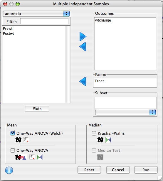 The plot button gives box and jitter plots.